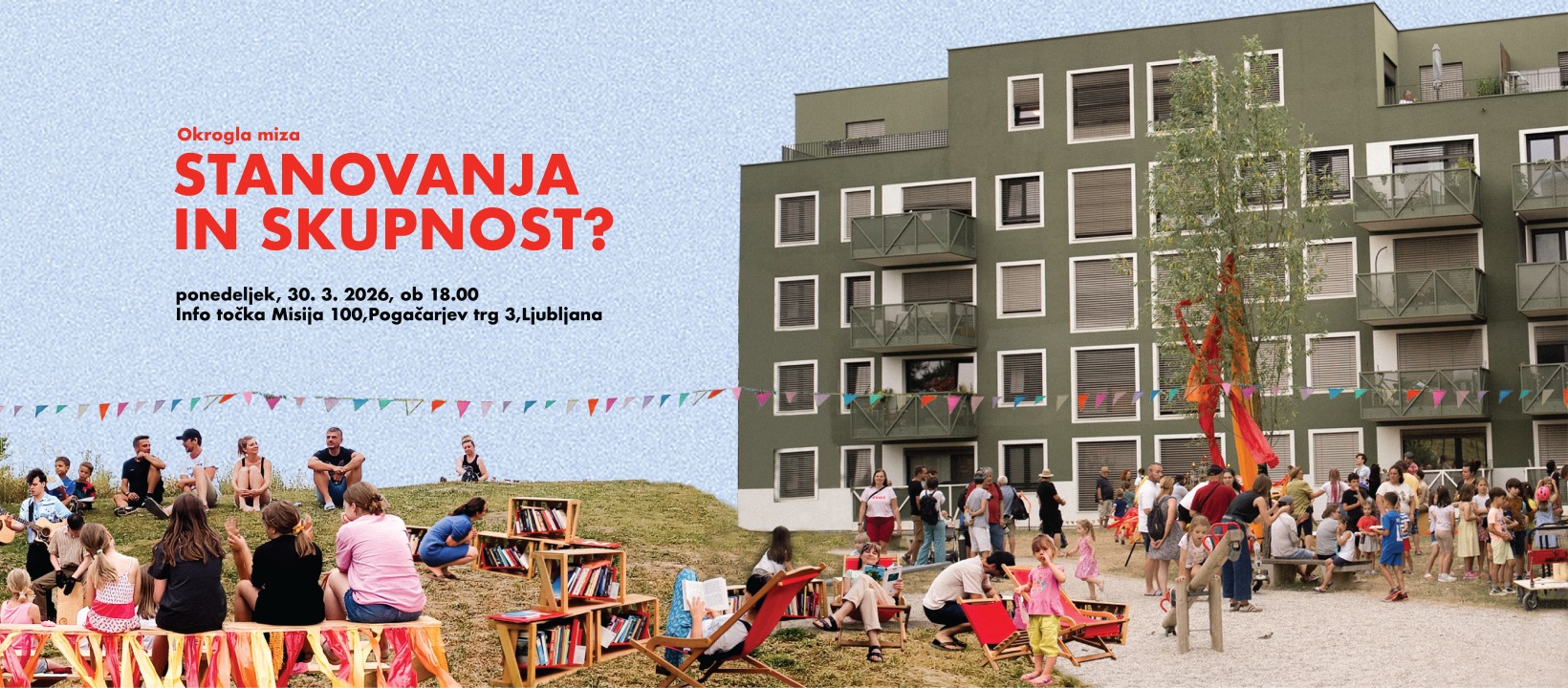 Zadruga Zadrugator vabi na okroglo mizo STANOVANJA IN SKUPNOST? v ponedeljek, 30. 3. 2026, ob 18. uri v Info točki Misija 100, na Pogačarjevem trgu 3.
